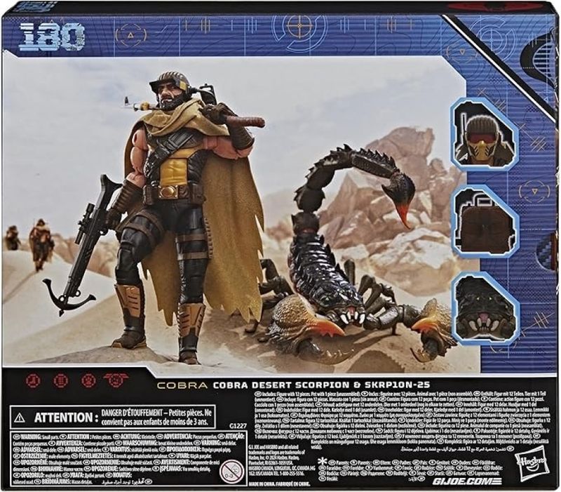 Gi Joe Classified Series Elite 180 - Cobra Desert Scorpion & Skrpion-25 - Hasbro YO JOE! FIGURAS G.I. JOE INCRÍVEIS DE 15 CM: a série G.I. Joe Classified Series inaugura uma nova era para os personagens incríveis que os fãs conhecem e amam, em uma escala de 15 cm, multiarticuladas com detalhes fantásticos INSPIRADO NO DESIGN CLÁSSICO: Esta figura apresenta design e acessórios incríveis e detalhes atuais fantásticos, e traz a personagem com um toque de modernidade acompanhada de um escorpião mutante articulado MULTIARTICULADA COM ACABAMENTO DE ALTA QUALIDADE: A figura G.I. Joe Classified Series tem um acabamento excepcional e é articulada para permitir poses legais em dioramas fantásticos (algumas poses podem exigir um suporte adicional). EMBALAGEM COM "JANELA": número 180 da sequência da Classified Series. Embalagem com "janela" para ver a figura e acessórios, além de exibir ícones de perfil técnico de cada personagem, uma linda arte original da figura e renderizações digitais dinâmicas DIVERSAS FIGURAS DE HERÓIS E VILÕES: Outras figuras de 15 cm e brinquedos G.I. Joe disponíveis (vendidas separadamente, sujeitas à disponibilidade) para colocar os famosos heróis e vilões lado a lado UM PRESENTE PERFEITO: Seja para aniversários, Natal e feriados, ou uma surpresa divertida, esse conjunto é um ótimo presente para os fãs de longa data dos brinquedos G.I. Joe ou para meninos e meninas que adoram ação e aventura Idade acima de 4 anos Contem 2 figura e acessórios Tamanho da embalagem 26 x 22 x 5 cm Fabricante Hasbro