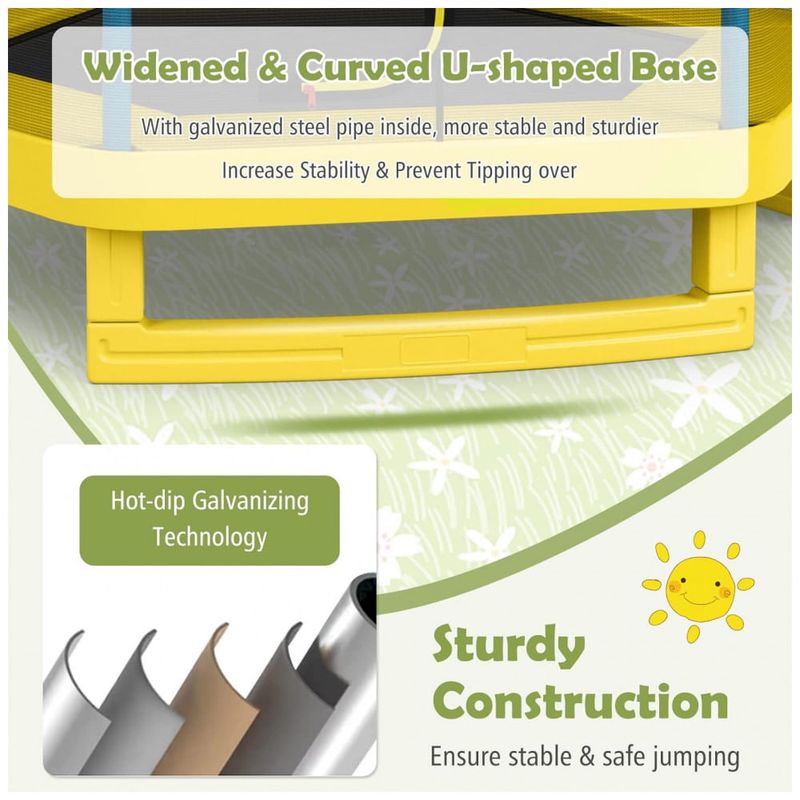 Max Load 100 kg O trampolim infantil Giantex é construído com tecnologia de galvanização a quente, garantindo uma experiência de salto estável e segura. A base em forma de U alargada e curvada, com tubo de aço galvanizado também no interior, é mais estável e resistente para aumentar a estabilidade e evitar que seus filhos tombem.