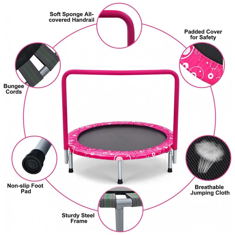 de usar Sempre mantemos a segurança de seus filhos em mente. Portanto, este mini trampolim infantil foi projetado com alça totalmente coberta e capa acolchoada de segurança, que protege os pés de seus filhos de lesões acidentais, além de adicionar a sensação de segurança para uma pegada segura.