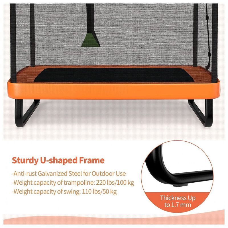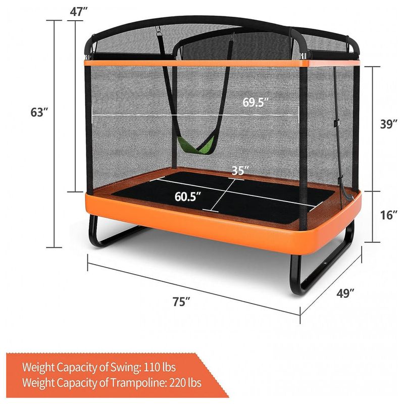 Balanço e removível Este trampolim infantil é diferente dos outros porque possui um balanço interno para que seu filho possa balançar e pular enquanto isso. E as cordas em ambos os lados são convenientes para o seu filho segurar, o que aumenta a sensação de segurança. O balanço também pode ser removido para maior comodidade.