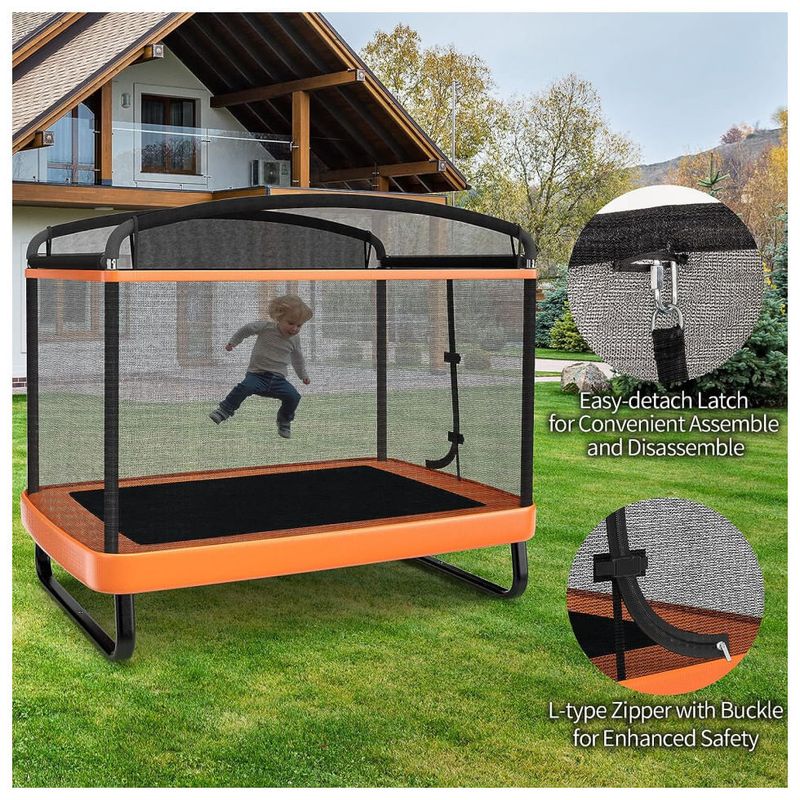 de usar a segurança das crianças é nossa prioridade. Com uma rede de segurança com zíper suave e fivelas duplas, almofada de espuma macia sem costura e tubos superiores acolchoados de espuma, este trampolim de alta qualidade mantém seu filho enquanto deixa seu filho se divertir. Por exemplo, o design sem lacunas evita lesões acidentais nas mãos ou nos pés.