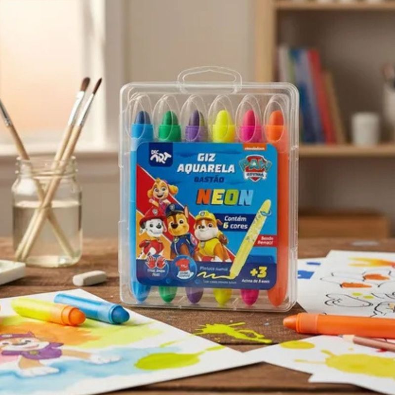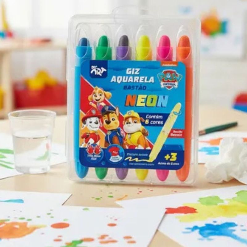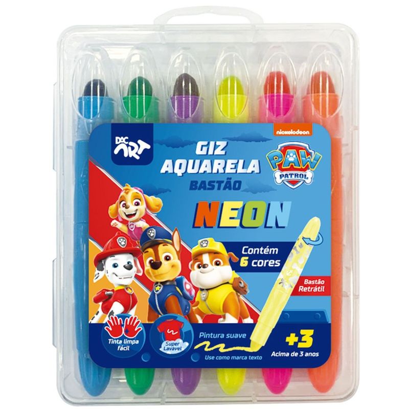 GIZ AQUARELA BASTÃO RETRÁTIL NEON 6 CORES PATRULHA CANINA - 4734 - DAC
