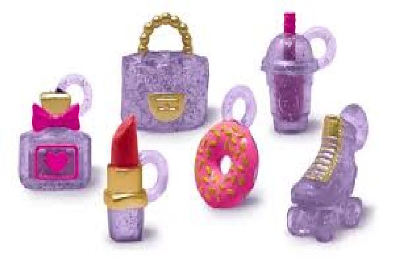São Diversos Acessórios Brilhantes Que Podem Incluir Mini Bolsas, Perfumes, Batons, Patins, Copinhos e Muito Mais.