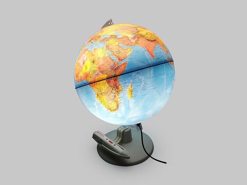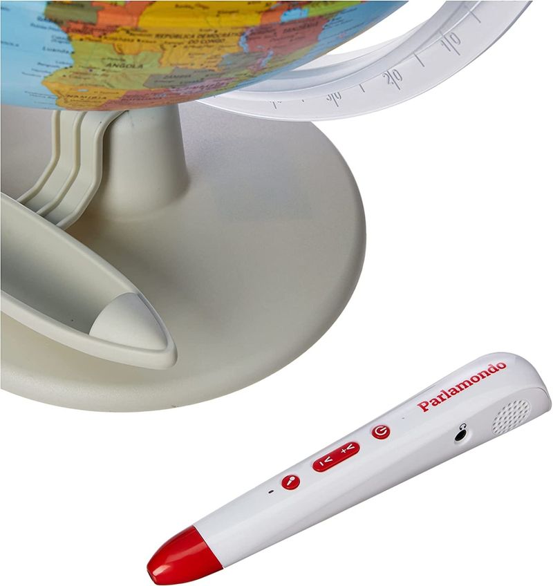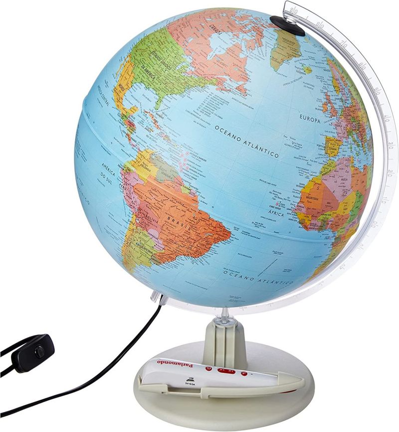 Contém: Um Globo Terrestre Luminoso, 1 Base em Plástico, 1 Caneta Parlamondo interativa, 1 Meridiano e Instruções.