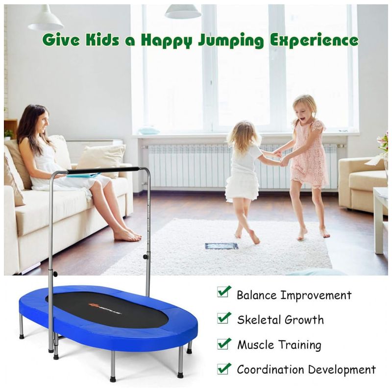 Trampolim para 2 pessoas Este trampolim duplo oval oferece espaço de entretenimento suficiente para as crianças, adequado para duas crianças pularem ao mesmo tempo. Também pode fornecer um momento interativo entre pais e filhos para que pais e filhos pulem e brinquem juntos.