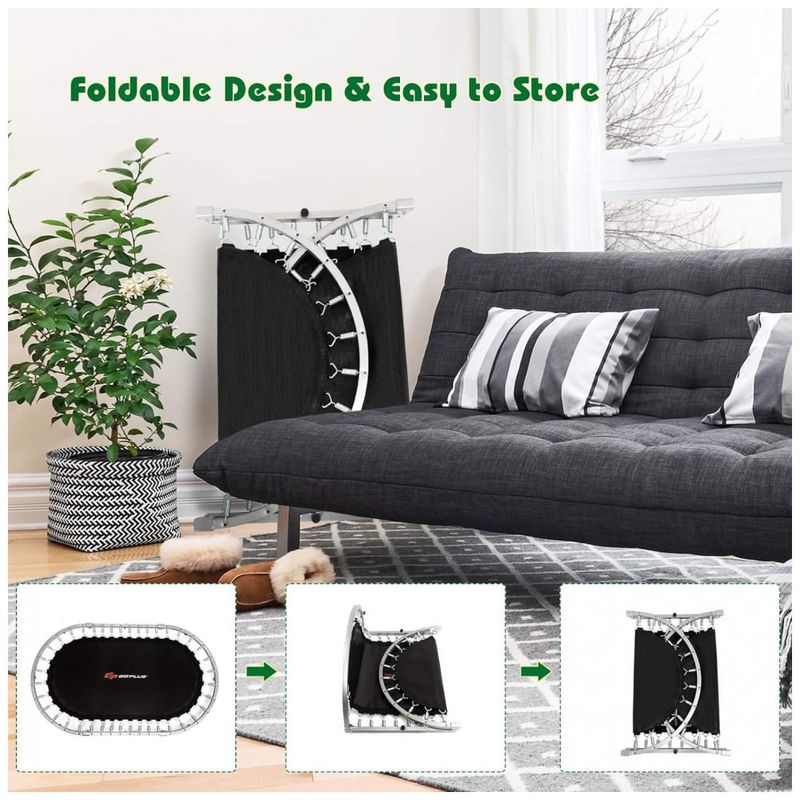 Excelente desempenho de salto Existem 40 molas de metal pesado firmemente presas ao bloco de salto e à estrutura, que não apenas resistem à deformação, mas também fornecem excelente desempenho de salto para uso a longo prazo. Além disso, as almofadas de salto em PP respiráveis proporcionam um desempenho de salto superior e uma experiência mais confortável.
