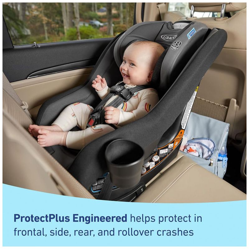 Graco ProtectPlus Engineered uma combinação dos testes de colisão mais rigorosos que ajuda a proteger seu filho em colisões frontais, laterais, traseiras e capotamento