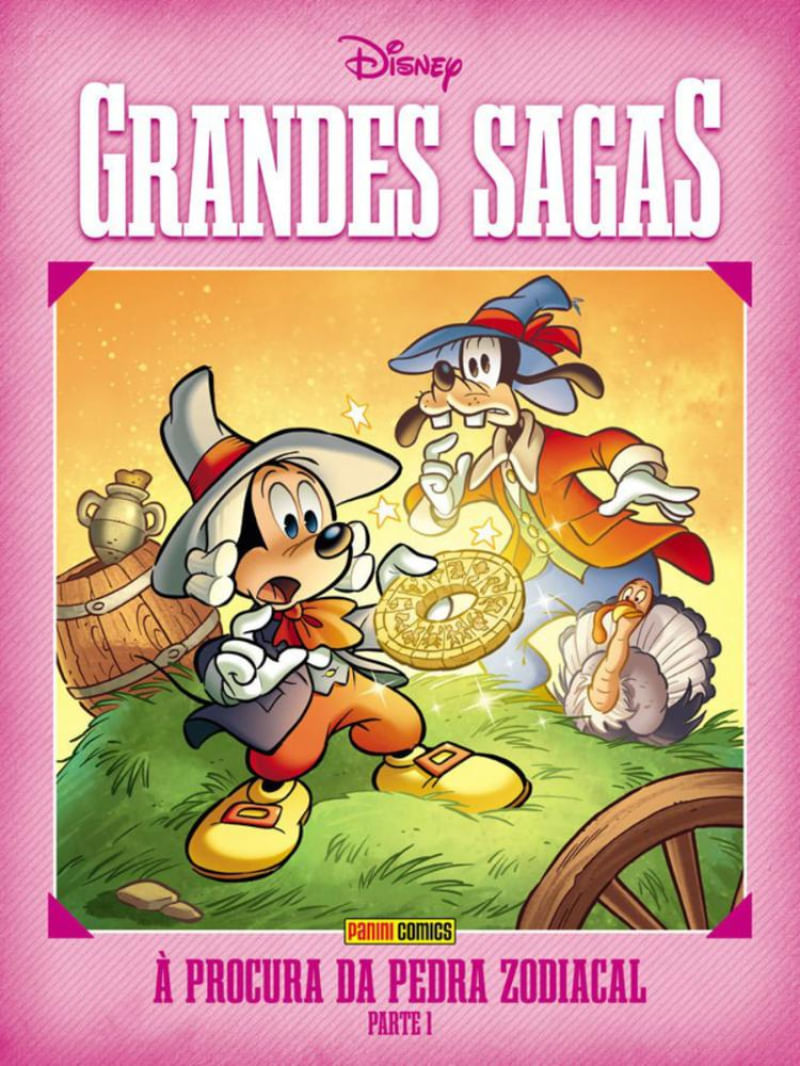Nesta megassérie em 12 capítulos criada em 1990, Mickey, Minnie, Pateta, Pluto, Donald, Tio Patinhas, os sobrinhos e outros heróis Disney se unem para localizar as peças da lendária Pedra Zodiacal – que tem o poder de antever o futuro – e remontar o poderoso talismã. O problema é que tem mais gente atrás do artefato… como os bandidões João Bafo-de-Onça e Mancha Negra! O primeiro volume de Grandes Sagas Disney dedicado à trama inclui os quatro episódios iniciais: Os Doze Nomes, O Vale dos Escorpiões, Por uns Xelins a Mais e Pavor no Circo.