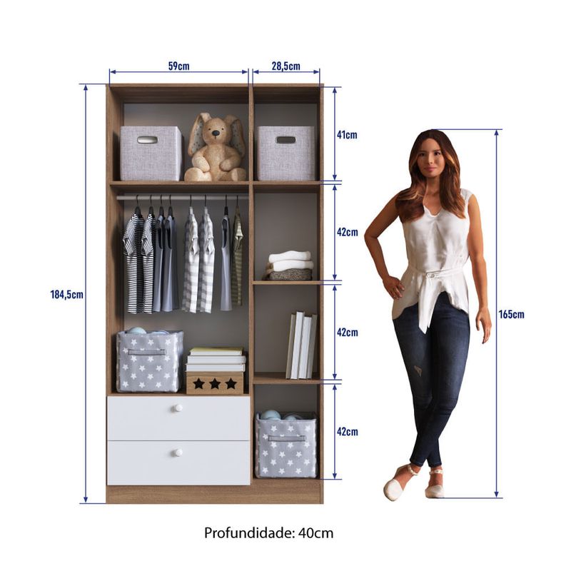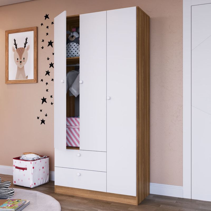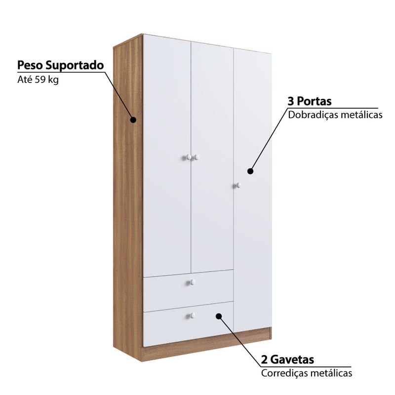 Guarda Roupa Aconchego 3 Portas e 2 Gavetas - Branco/Nogal
