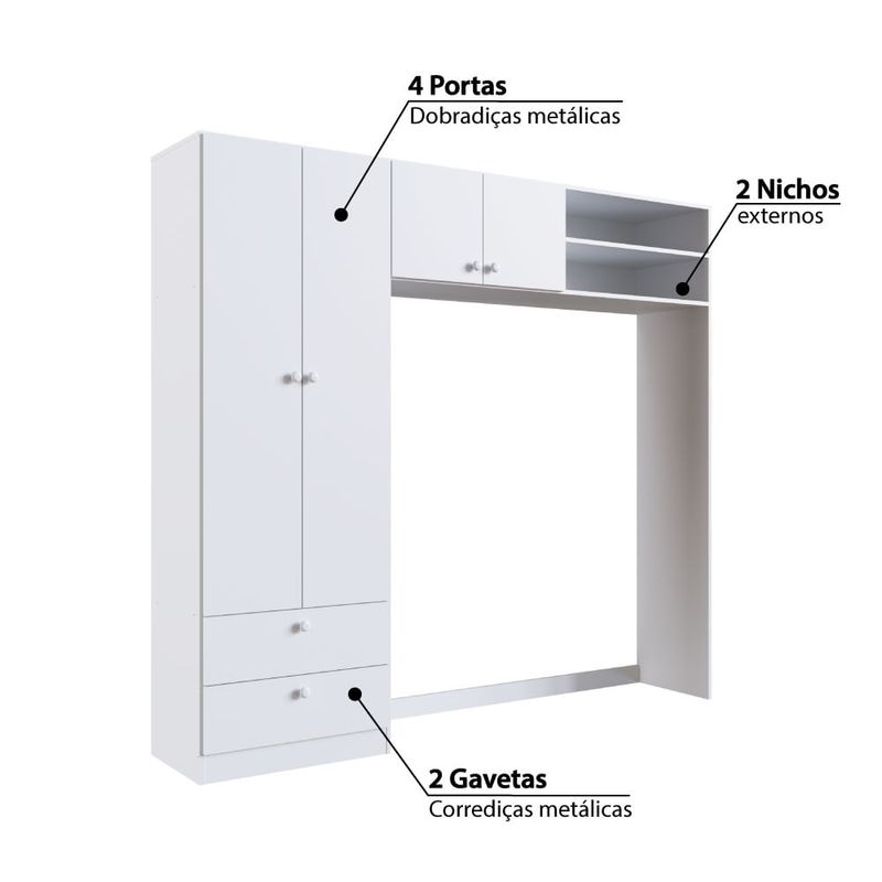 Guarda Roupa Aconchego 4 Portas 2 Gavetas e 2 Nichos - Branco
