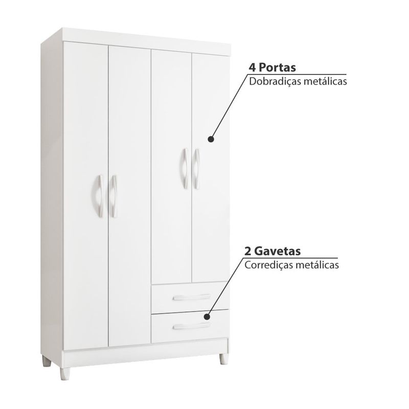 Guarda Roupa Âmbar Flex com 4 Portas - Branco