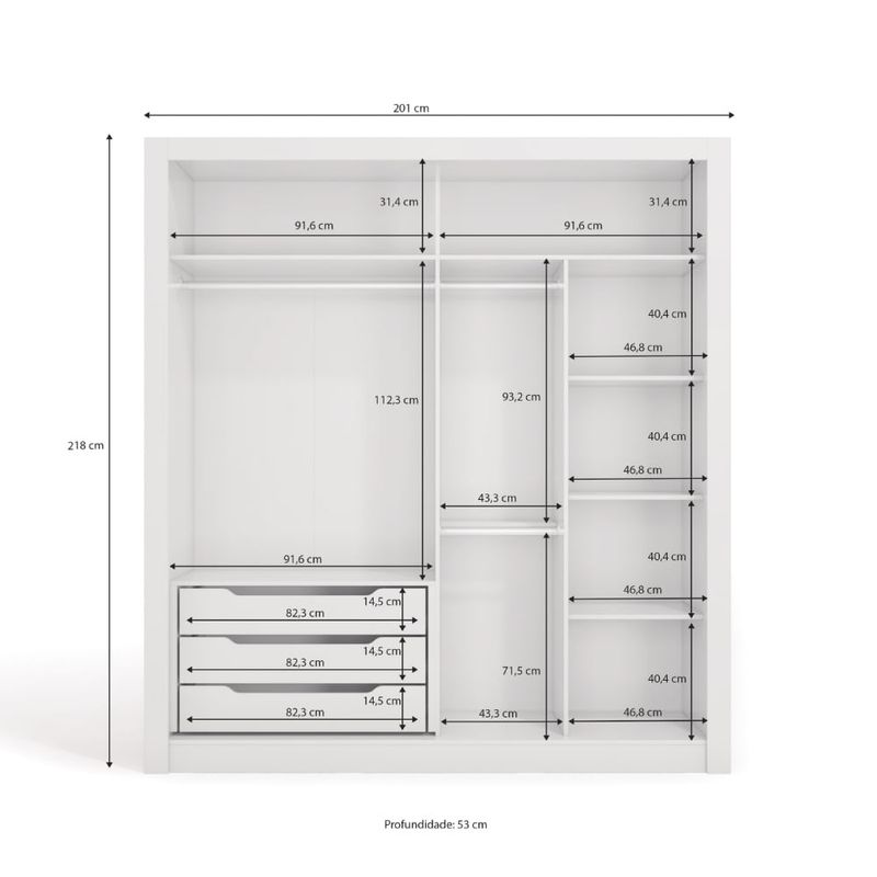 O Guarda Roupa da Kappesberg, além de sua elegância e qualidade, é versátil, ele leva modernidade ao seu quarto.Conta com 2 portas de correr, 3 cabideiros, 3 gavetas com corrediça telescópicas e 6 nichos. Tudo isso para deixar seu ambiente ainda melhor.