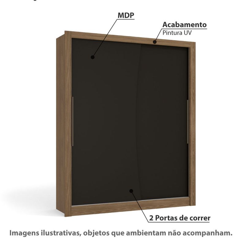 O Guarda Roupa da Kappesberg leva modernidade ao seu quarto, com 2 portas de correr, 2 cabideiros, 3 gavetas com corrediças telescópicas e puxadores de alumínio. Tudo isso para deixar seu ambiente ainda melhor. Produzido em MDP, garantindo maior durabilidade ao produto.