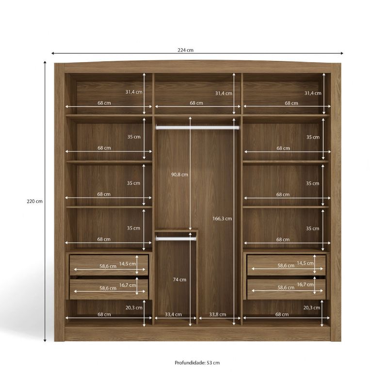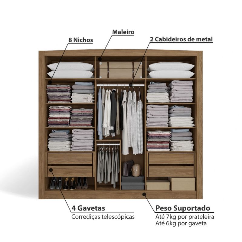 Guarda Roupa com 2 Portas de Correr e 4 Gavetas - Nogueira