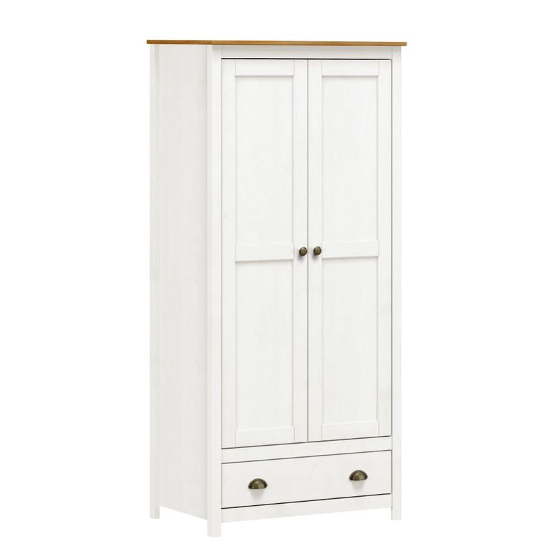 Guarda Roupa com aparência única, elaborado para atender altos padrões de elegância, requinte e qualidade. O Guarda Roupa traz um acabamento refinado em branco, que realça a madeira maciça, resultando em um belo toque luxuoso e autêntico. Além de toda sua presença visual e de estrutura, o roupeiro conta com duas portas e uma gaveta, com puxadores metálicos em ouro envelhecido, um cabideiro em alumínio, proporcionando um ótimo espaço para organização de seus pertences. Faz parte da linha Topázio, a qual possui outros móveis para combinação vendidos separadamente.