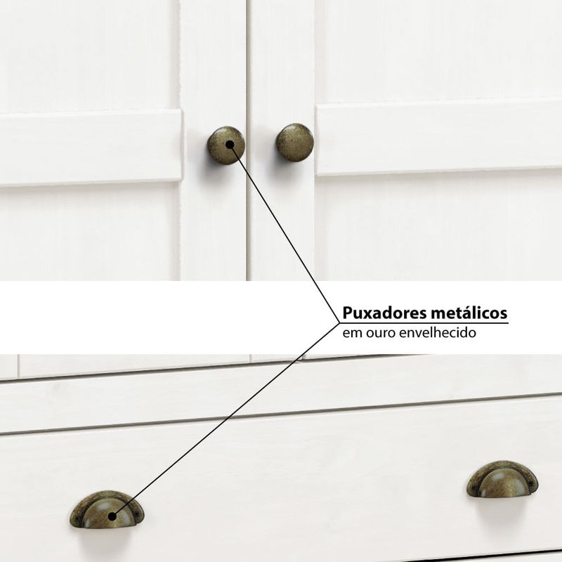 - Puxadores metálicos em ouro envelhecido