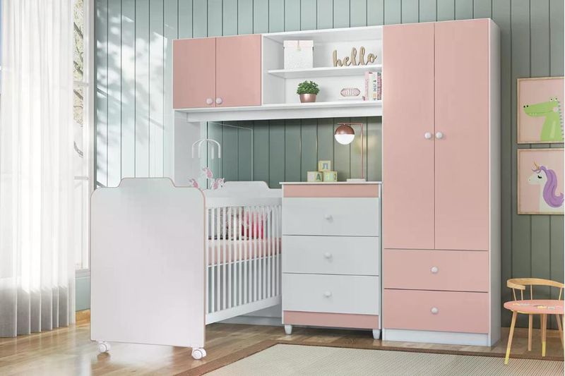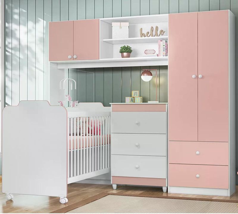 Guarda Roupa Com Berço e Cômoda Ternura Peternella, com desing morderno este Roupeiro é um charme, pratico, seguro e multifuncional, estrutura em MDP bio-sustentável de 12 e 15 mm, acabamento em pintura UV (Alto Brilho). Possui portas com dobradiças metálicas, gavetas com corrediças metálicas, puxadores bolinha, prateleira interna, dois nichos organizadores, cabideiro, este conjugado é super funcional e compacto excelente para pequenos ambientes, possui montagem inversa, pode ser montado para o lado direito ou esquerdo, com espaço de 134 de largura para encaixe de berço, Berço Certificado pelo Inmetro, ideal para colchão medindo 60cm x 130cm (Colchão Não Incluso), estrado resistente em MDF com 02 regulagem de altura, grades fixas de pinos revestidos para melhor segurança do bebê, suporte para mosqueteiro, suporta até 30 Kg, acompanha 04 rodízios sendo dois com trava, transforma-se em mini cama, Cômoda com cores flex, são 02 cores para você escolher durante a montagem. Este móvel chegará em sua casa separado em 05 volumes.