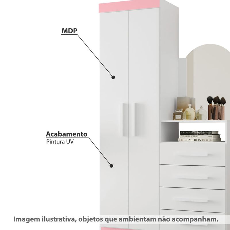 Guarda-Roupa Cômoda 4 Gavetas 2 Portas Capri - Branco/Rosa
