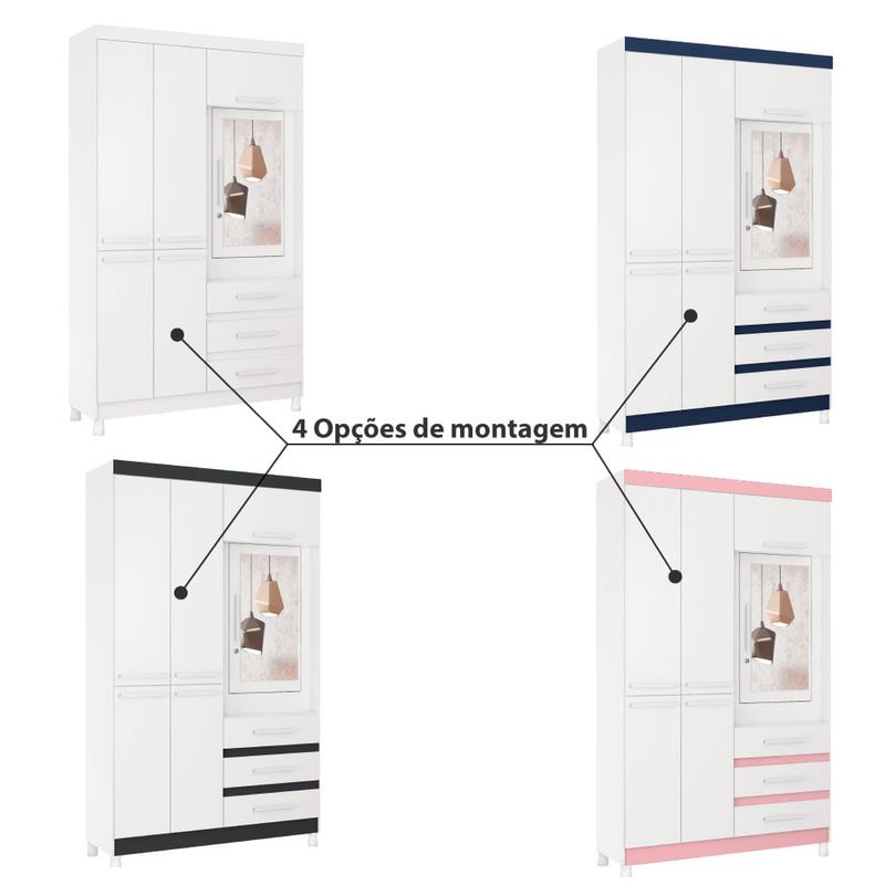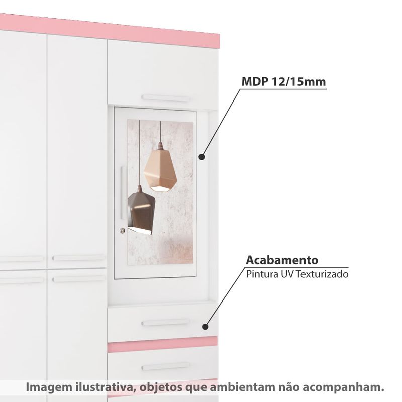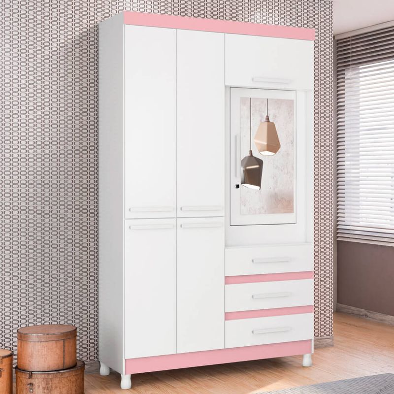 Guarda Roupa de Solteiro 6 Portas 3 Gavetas Fusion - Branco/Rosa