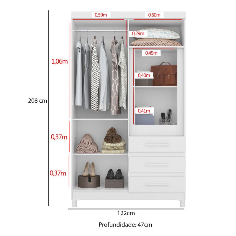 Para tudo isso nada melhor que o Guarda Roupa Solteiro Fusion. Este móvel possuí amplo espaço interno com ótima divisão, contando com 1 cabideiro, 3 prateleiras e 3 gavetas. Sua porta superior possui abertura com pistão à gás e seus pés são reguláveis. Conta ainda com a porta central com espelho e chave. Complemente seu quarto com a certeza de estar adquirindo um móvel de ótima qualidade e que proporciona toque decorativo ao dormitório.