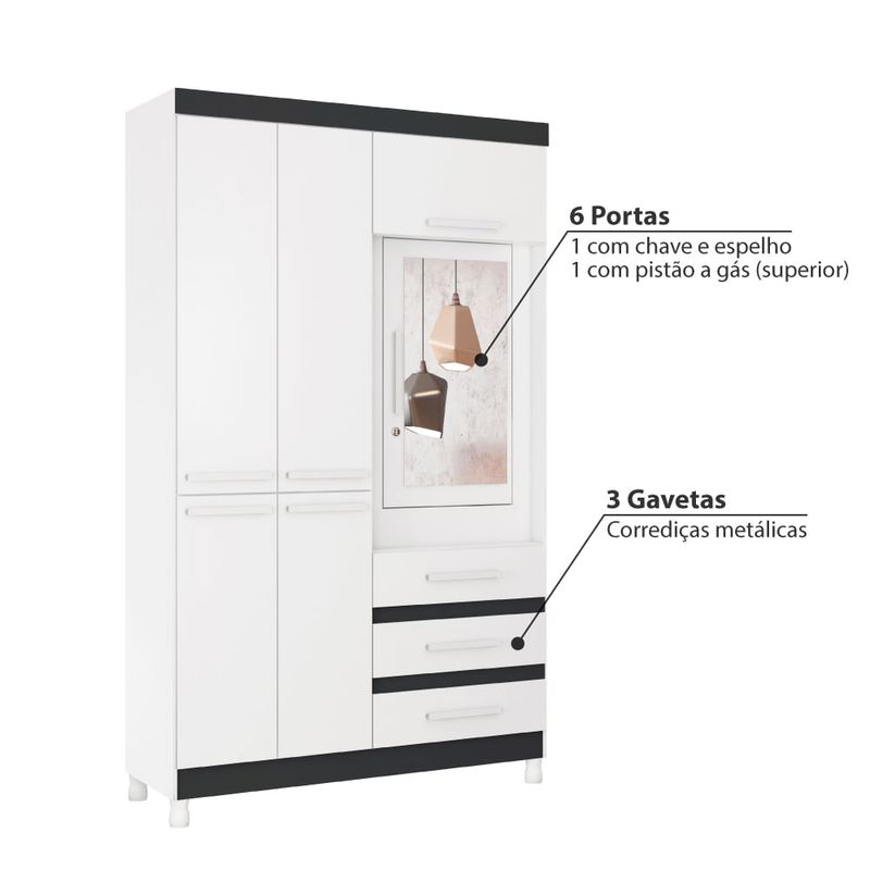 Guarda Roupa de Solteiro 6 Portas 3 Gavetas Fusion - Branco/Titanium