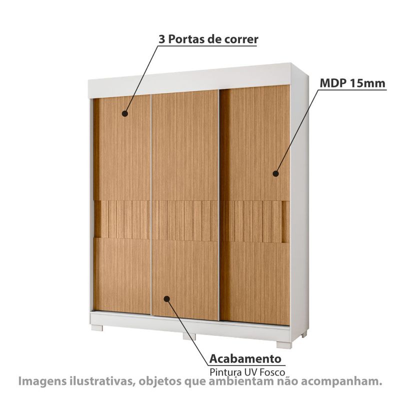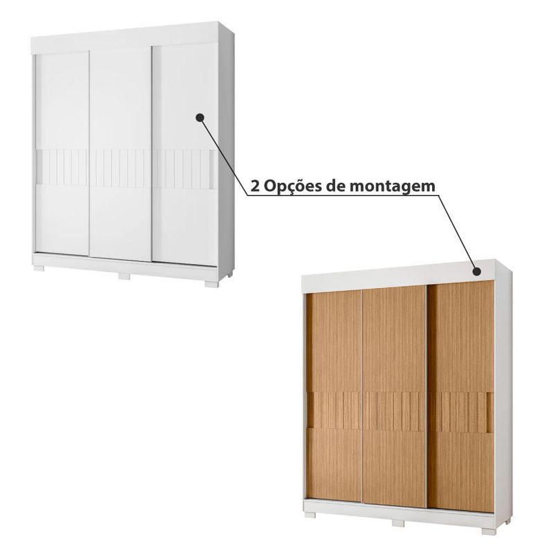 Guarda Roupa Estiletto com 3 Portas de Correr Flex - Branco/Natural