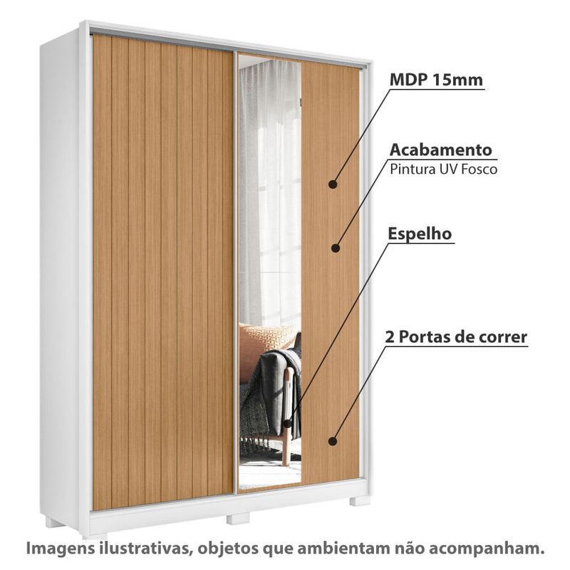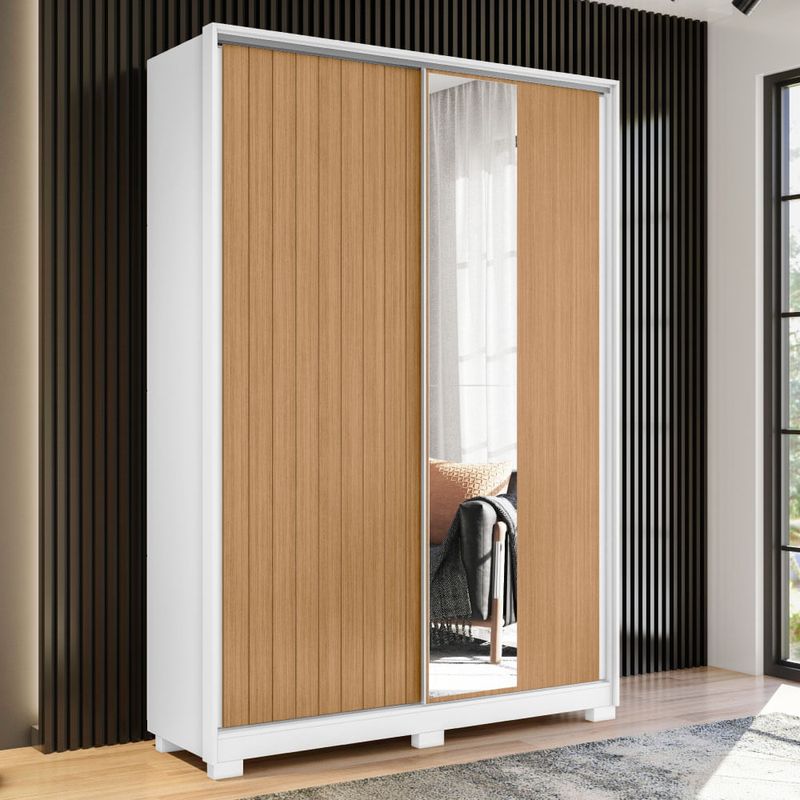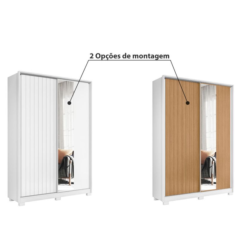 Guarda Roupa Frizatto c/2 Portas de Correr Flex e 2 Espelhos - Branco/Natural