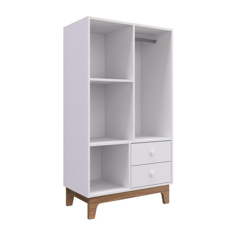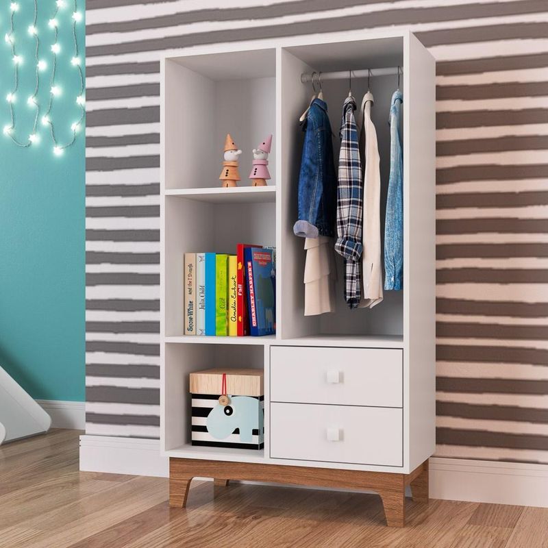Fabricado em MDP de qualidade com acabamento em pintura BP, é um roupeiro duradouro e resistente, ou seja, ideal para um cômodo em que precisamos otimizar todo o espaço disponível já que os donos do ambiente são pequenos, mas a bagunça pode ser das grandes. Esse roupeiro infantil conta com detalhes que ganham o coração. Quer saber por quê? Pois ele possui 2 gavetas de amplo espaço interno com corrediças metálicas, cabideiro para pendurar as roupas e 2 prateleiras que formam 3 nichos laterais, possibilitando uma visualização diária bem mais dinâmica e decoração cheia de personalidade. Ah, e os pés em madeira ainda agregam estilo retrô ao móvel, lindo né?