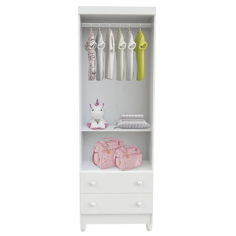 Para a organização do quarto do seu filho, conte com o nosso guarda roupa infantil. Trazendo praticidade e qualidade, conforto e beleza para deixar o ambiente bonito e organizado. O modelo conta com duas portas, duas gavetas, duas prateleiras, isso facilitará sua rotina e o quarto ficará formoso. Investir nele, é garantir um produto que reúne durabilidade, robustez, e claro, elegância. Este produto se encontra disponível nas cores Branco Brilho e Branco com Amadeirado.