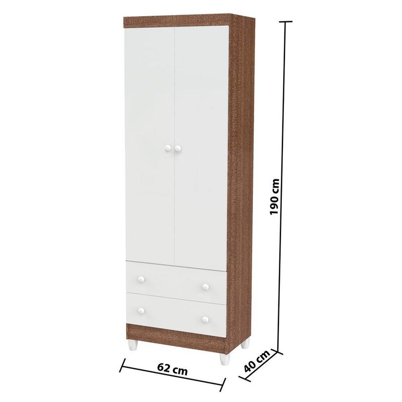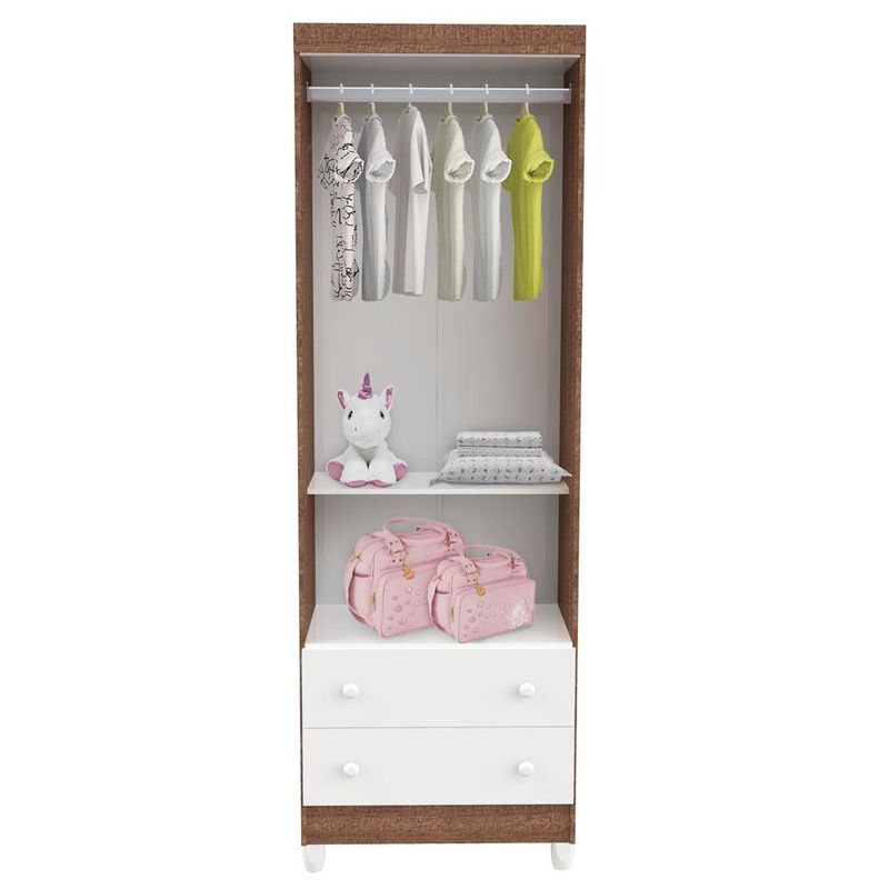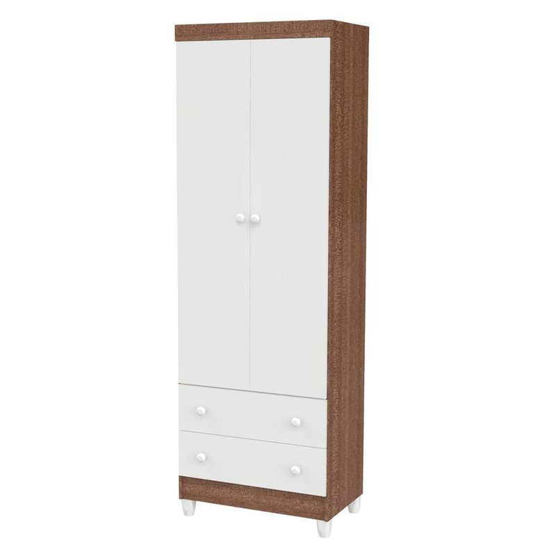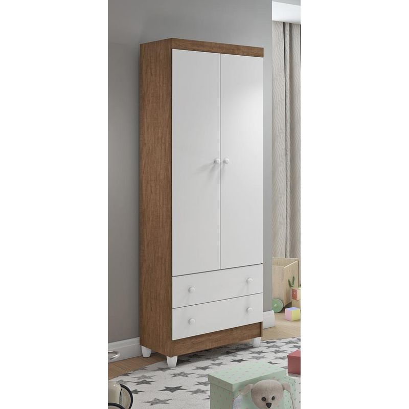 Guarda Roupa Infantil 2 portas com Gavetas Bianca Branco Fosco com Amadeirado Carolina Baby