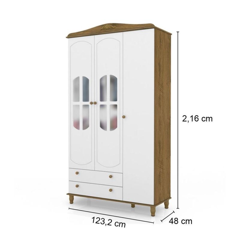 O Guarda Roupa Infantil Colonial, da Mpozenato, combina vários adjetivos que devem ser considerados no momento da escolha desse móvel. A começar pelo design clássico, com pés torneados e aplique de arabesco na parte superior, que remetem ao estilo provençal digno de realeza. Além disso, esse guarda roupa 3 portas conta com ótima repartição interna, com prateleiras espaçosas e cabideiro e, ainda, duas gavetas para otimizar a organização.