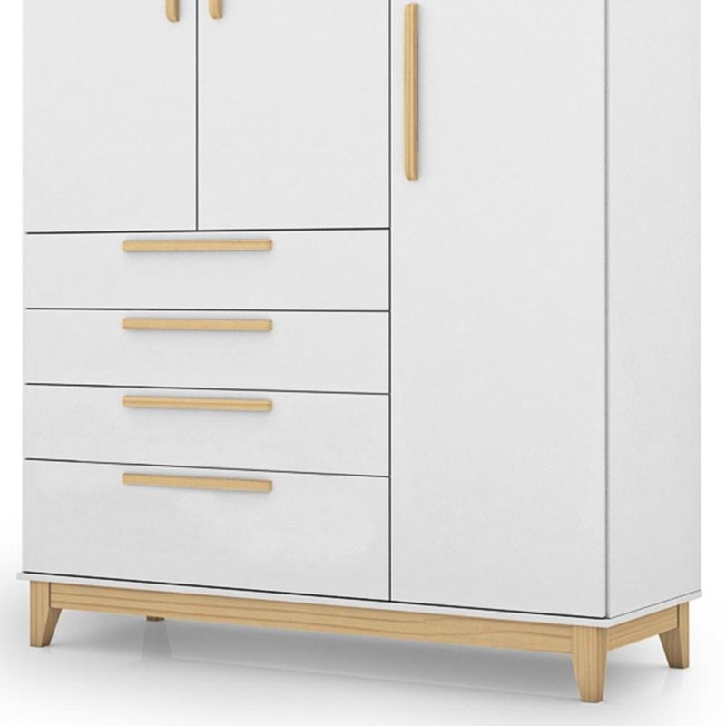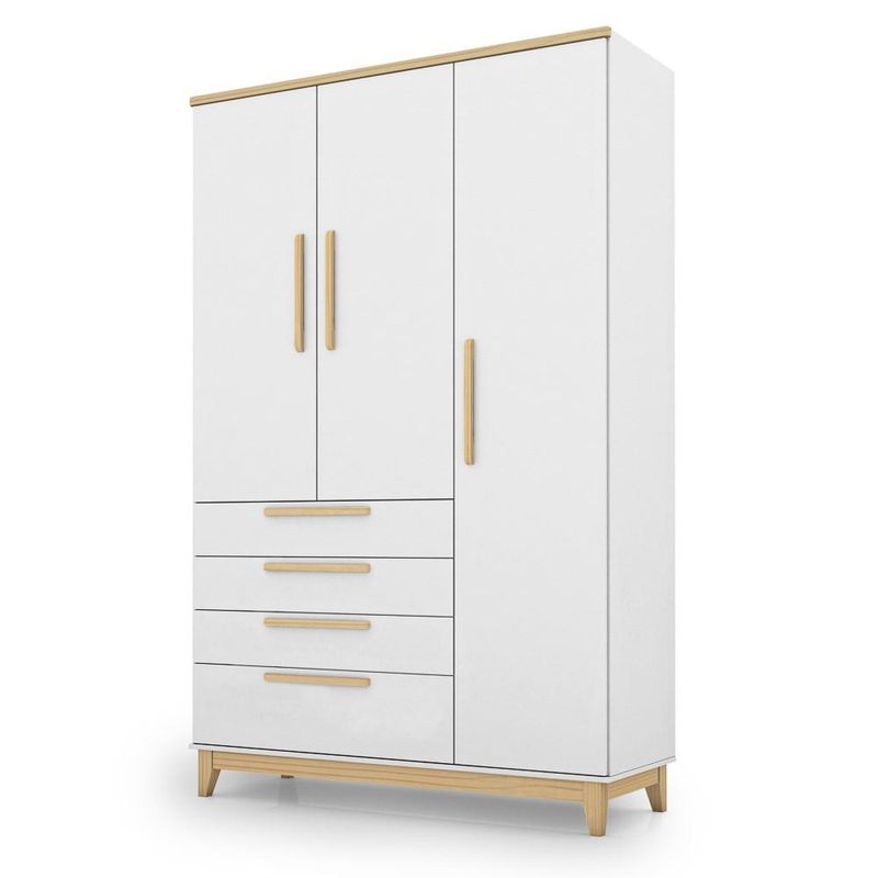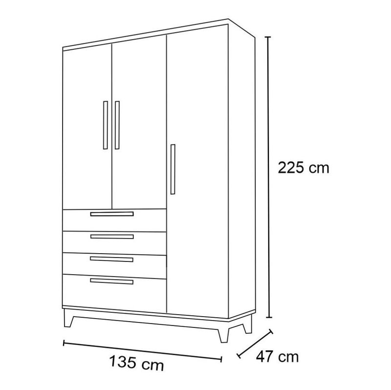Com um design moderno e cheio de estilo, esse guarda roupa 3 portas vai criar um quarto lindo e, ainda, manter tudo no devido lugar graças a ótima repartição interna, com prateleiras e cabideiro, além das quatro gavetas. Assim, você gasta menos tempo com organização e mais tempo com o seu bem mais precioso. Outro destaque desse móvel é a excelente qualidade, pois é fabricado 100% em MDF com pés em madeira maciça, ou seja, um guarda roupa resistente e que acompanhará o crescimento do seu filho da infância à juventude.