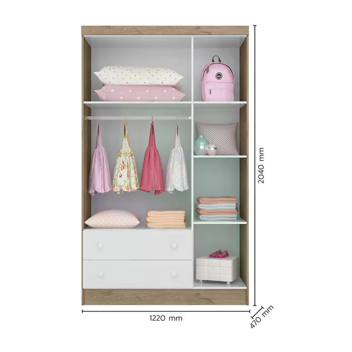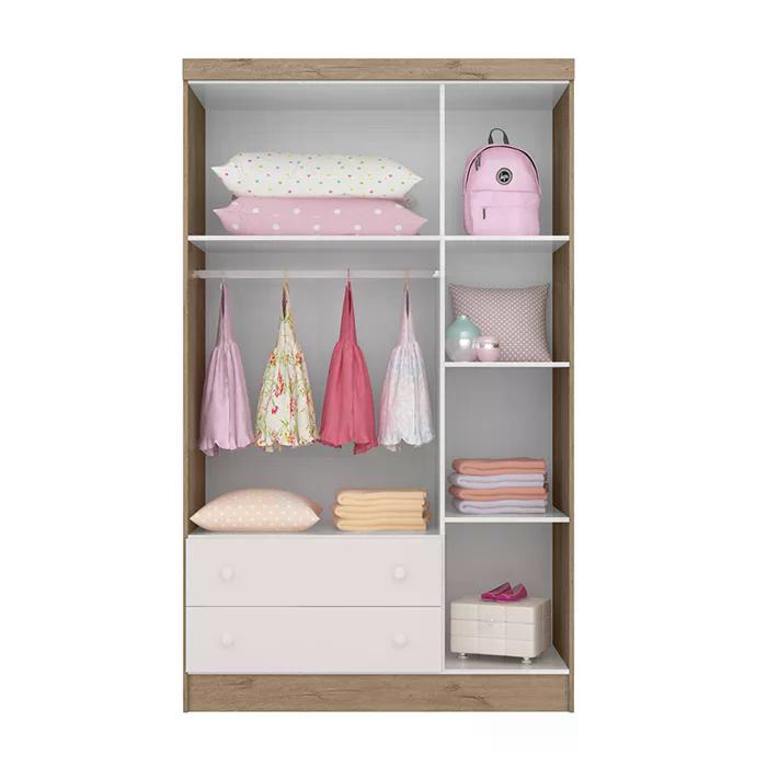 Guarda Roupa Infantil, um produto versátil que conta com um design lindo e sofisticado, deixando o ambiente ainda mais moderno e aconchegante. Estrutura em MDP 15mm e MDF de 12mm, feito com material ecológicamente correto, para melhor durabilidade e resistência à peça, pintura atóxica livre de materiais pesados, e excelente acabamento UV (). Composto por portas de bater com dobradiças metálicas, detalhes usinados em acrílico incolor, cabideiro oblongo metálico, ótima divisão interna para roupas, gavetas externas com corrediças metálicas, puxadores em plástico com um ótimo design e padrão de acabamento, e prateleiras para melhor organização. Mais produtos da linha infantil Amore, você encontra em nosso site, podendo fazer a composição completa para o quarto do seu (sua) filho (a). Este móvel chegará em sua casa separado em 02 volumes.