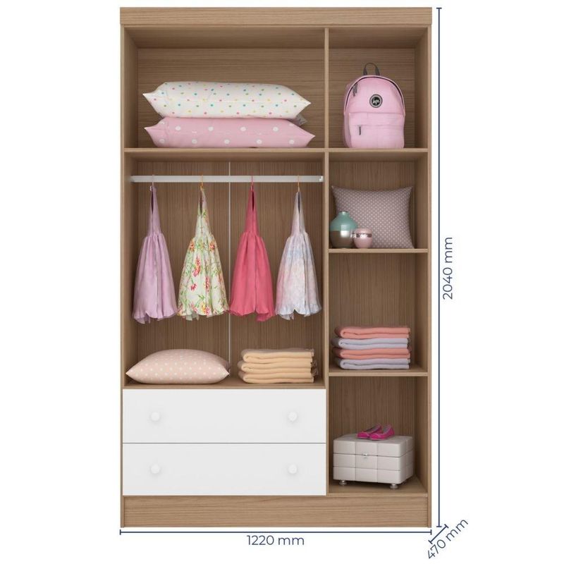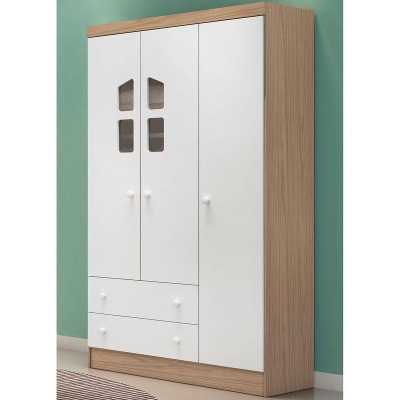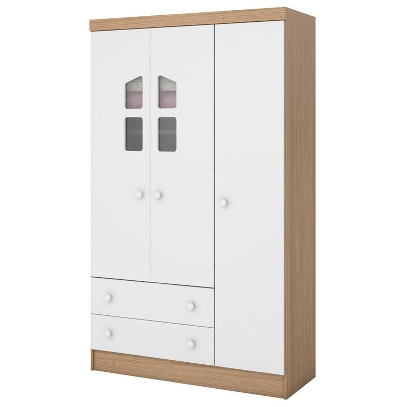 Guarda Roupa Infantil Amore 3 Portas 2 Gavetas Carvalho Rústico Toq/Branco, estrutura em MDP/MDF de qualidade, portas com dobradiças metálicas resistentes, detalhes em acrílico proporcionando mais charme ao móvel, cabideiro oblongo metálico para acomodar as roupas sem amassar, gavetas com corrediças metálicas que deslizam com suavidade e excelente profundidade, ótimo espaço interno, puxadores exclusivos com alto padrão de acabamento, perfeito para deixar o quarto das crianças prático e bonito. Confira!