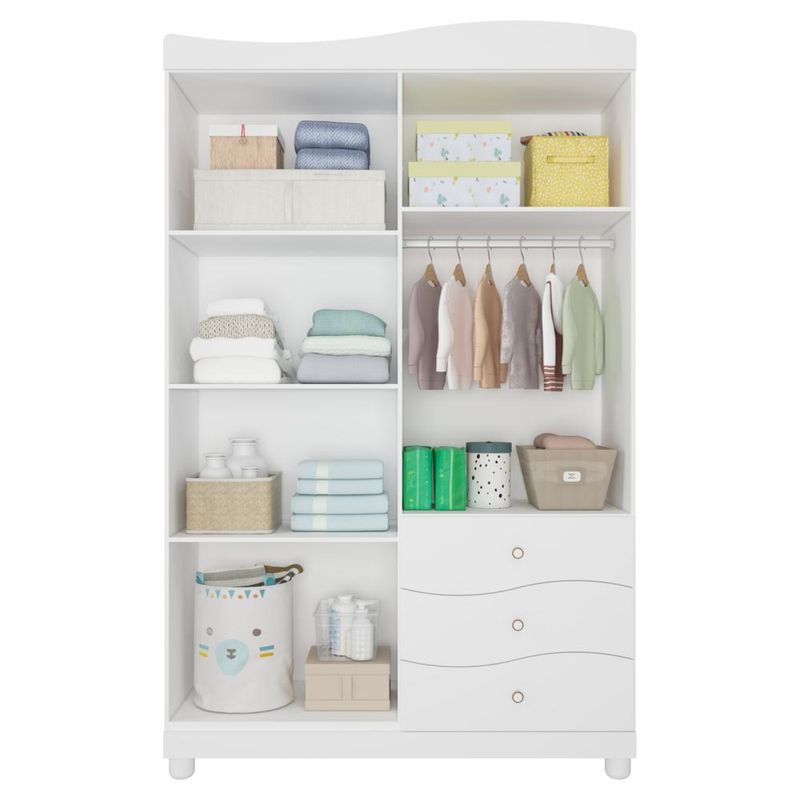 O Guarda Roupa Riso da Permobili é ideal para organizar as roupas e demais acessórios do seu filho. É produzido com materiais de alta durabilidade e resistência e possui design delicado e moderno, ideal para compor o quartinho da criança.