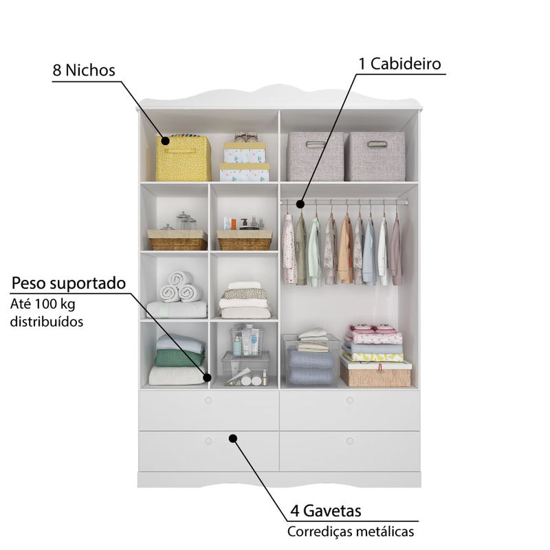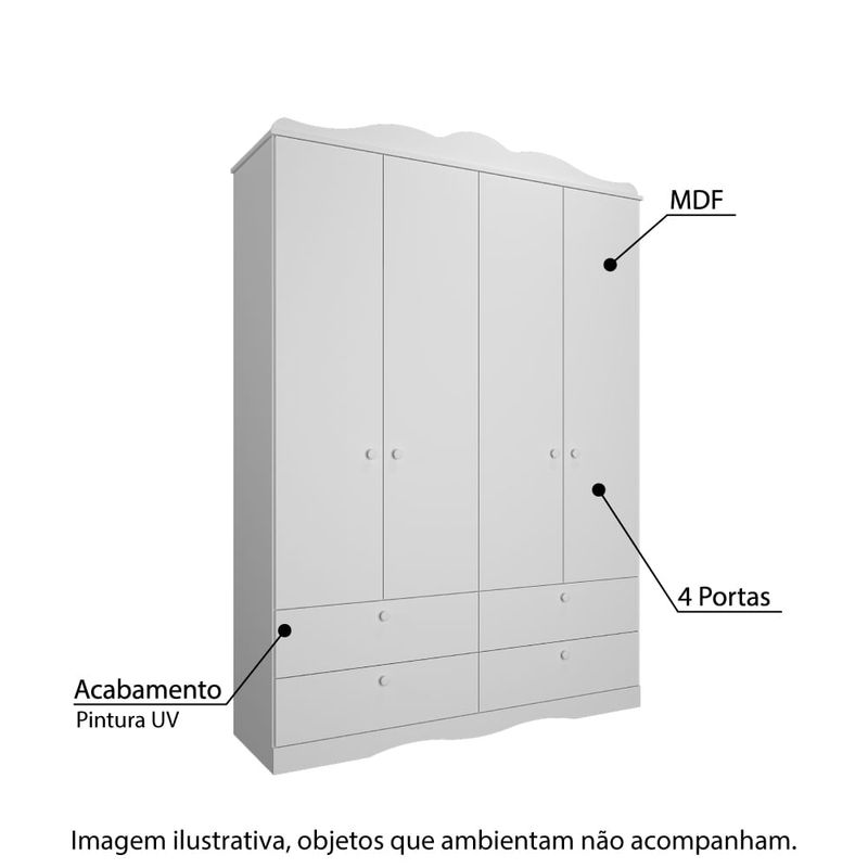 Guarda Roupa Infantil Encanto com 4 Portas - Branco