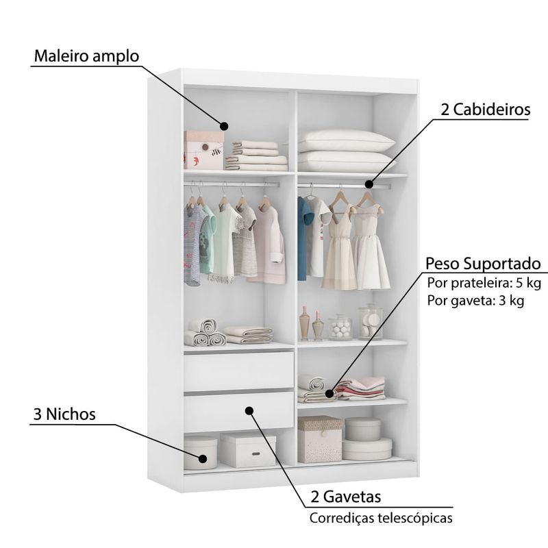 Guarda Roupa Infantil Hope com 2 Portas de Correr - Branco
