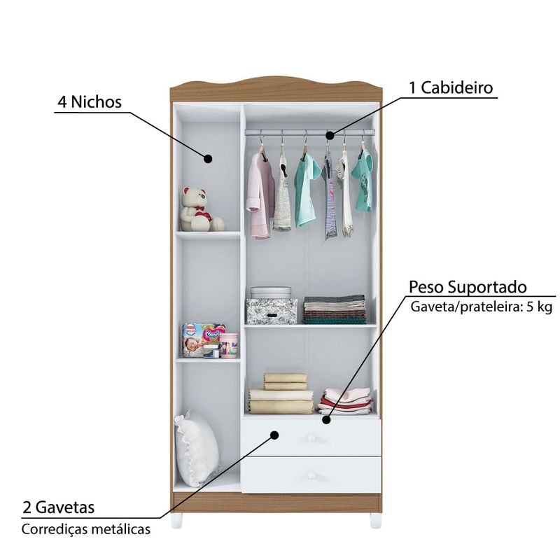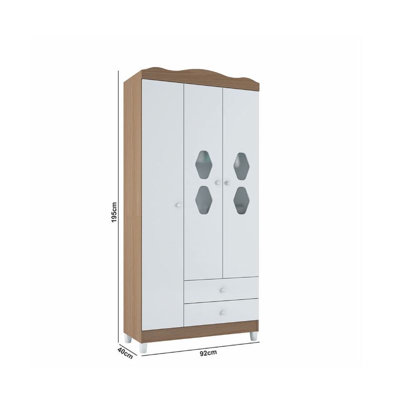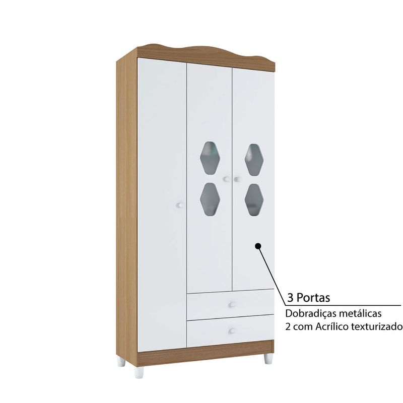 Guarda Roupa Infantil Lolly com 3 Portas - Branco/Almendra