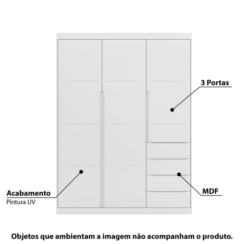 Guarda Roupa Infantil Pérola com 3 Portas - Branco