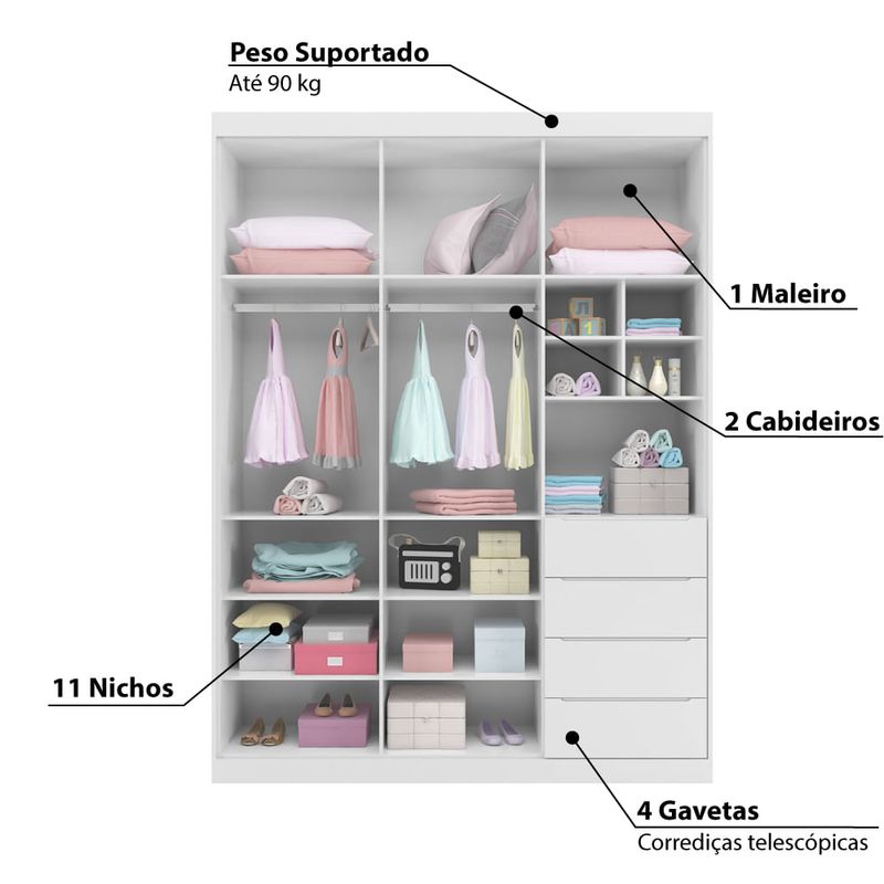 O Guarda Roupa Infantil Pérola foi inspirada na decoração clássica, no intuito de trazer aconchego e elegância ao quarto. Tem um design que mescla o clássico com o contemporâneo trazendo ainda mais elegância para o quartinho das crianças. São 3 portas, 4 gavetas, 11 nichos e 1 maleiro, possibilitando organizar as roupinhas da melhor maneira possível. Um móvel para trazer beleza e aconchego ao quarto das crianças.