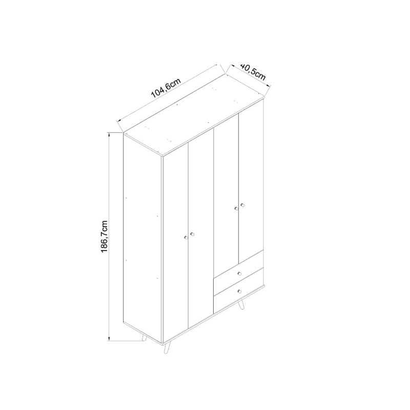 Guarda Roupa Infantil Play com 4 Portas - Ébano/Branco