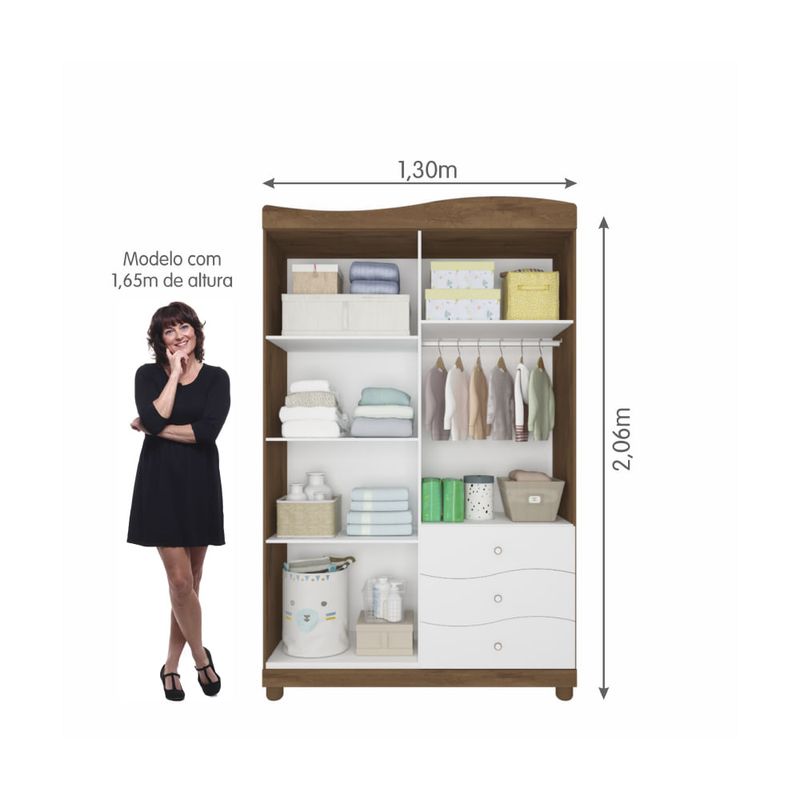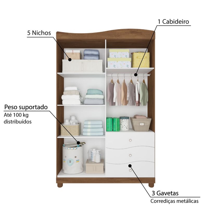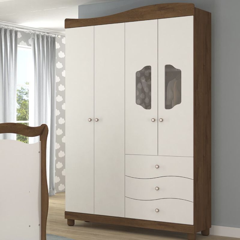 O Guarda Roupa Infantil Riso foi inspirado na decoração clássica, no intuito de trazer aconchego e elegância ao quarto. Uma peça capaz de se adequar com o tradicional ao contemporâneo, sempre com estilo. Sua capacidade interna é dos sonhos, com muito espaço para você guardar todas as roupinhas e objetos de forma organizada. Com 4 portas, 3 gavetas com corrediças metálicas, 5 nichos e 1 cabideiro. Um móvel para trazer beleza e aconchego ao quarto do bebê, mas também muito adequado as diferentes faixas etárias.