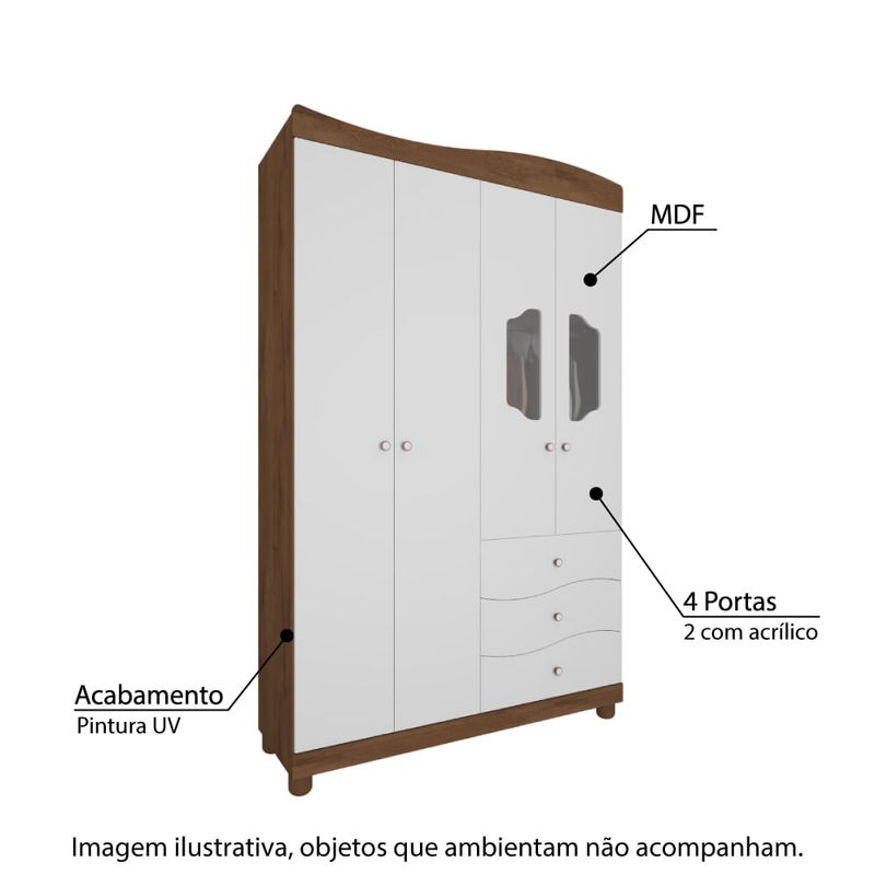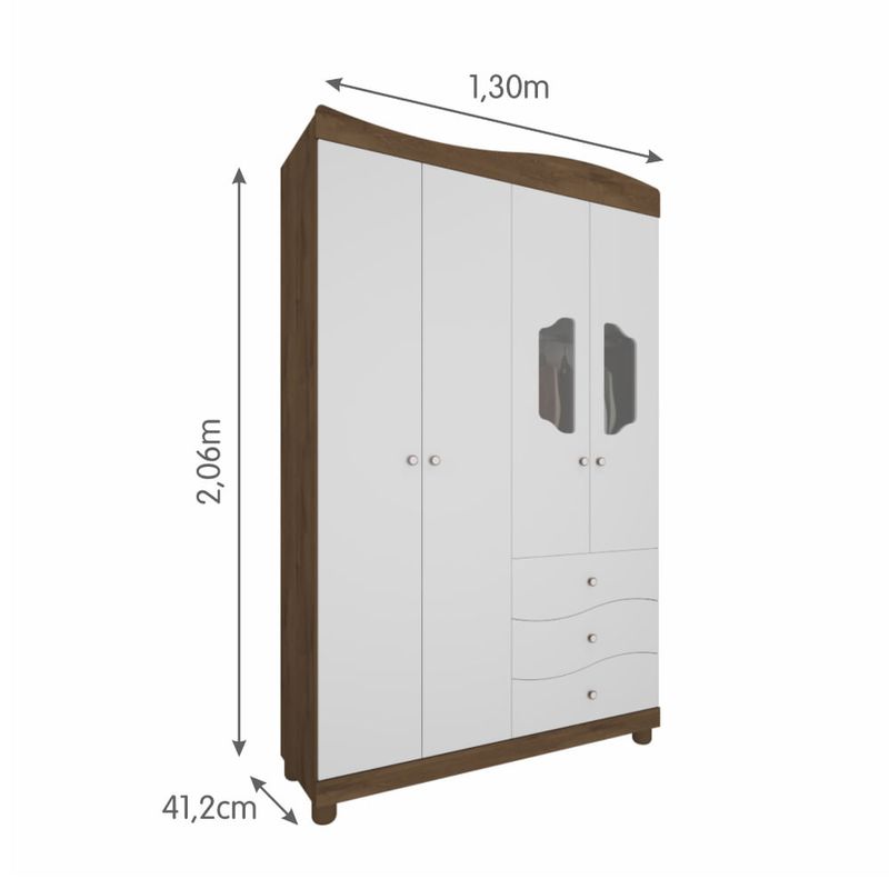 Guarda Roupa Infantil Riso com 4 Portas - Branco/Carvalho