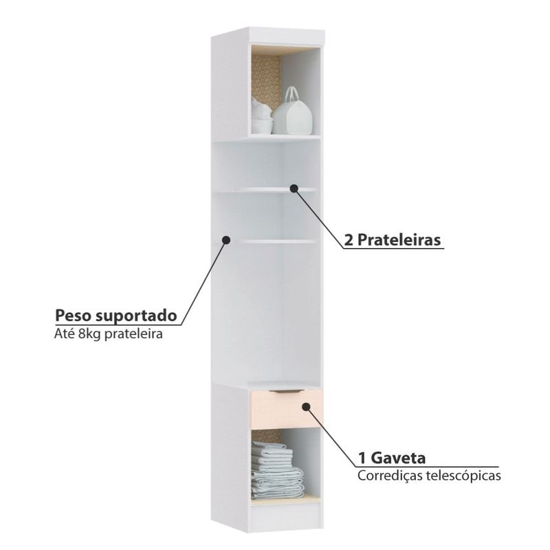 - Peso suportado: 8 kg por prateleira