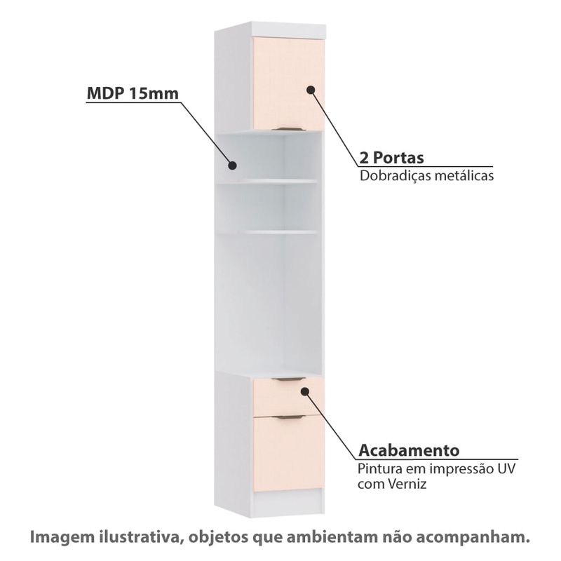 Guarda Roupa Modulado Infinity com 1 Gaveta - Branco Line/Rosa