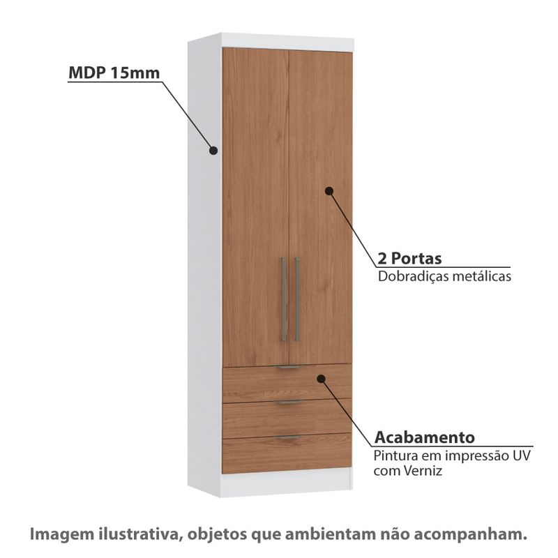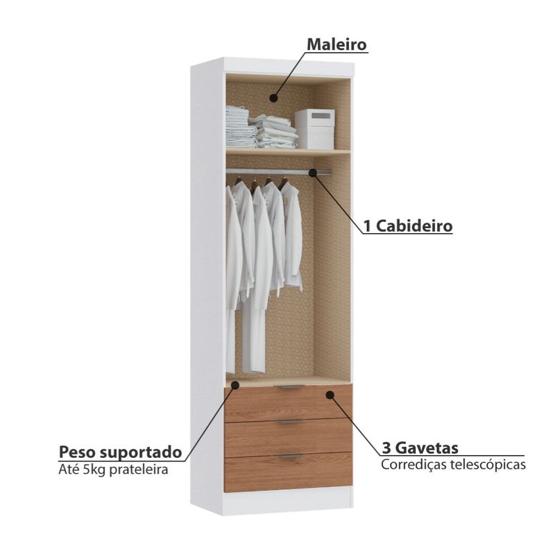 Guarda Roupa Modulado Infinity com 3 Gavetas - Branco Line/Macadâmia