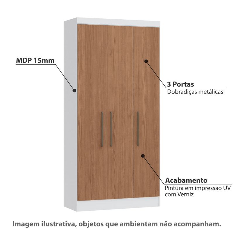 Guarda Roupa Modulado Infinity com 3 Portas - Branco Line/Macadâmia