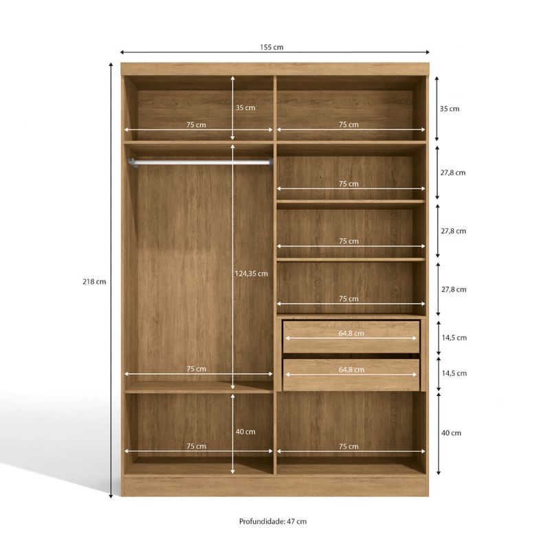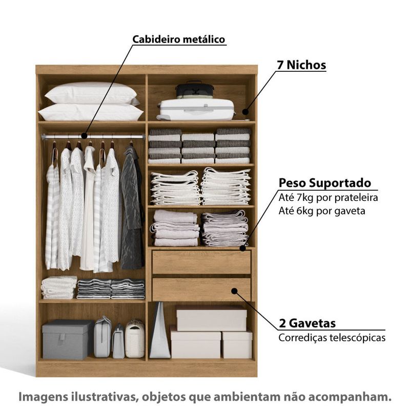 - Peso Suportado: Até 7kg por prateleira e 6kg por gaveta