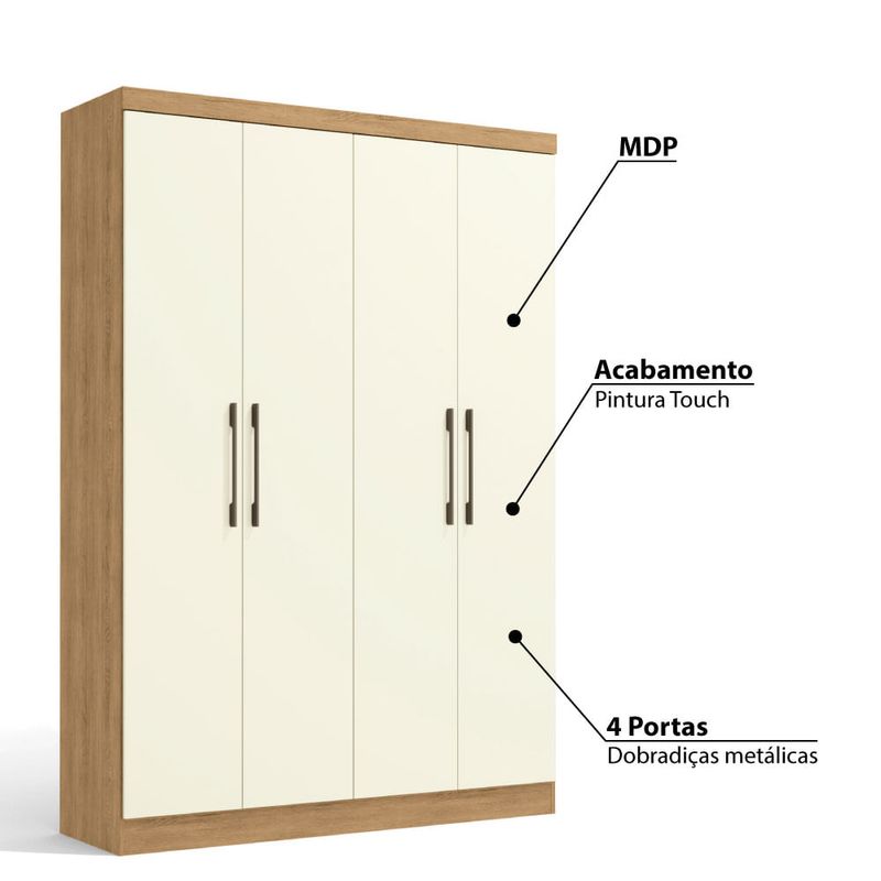 Guarda Roupa Modulado Prisma 4 Portas e 2 Gavetas - Freijó/Off White