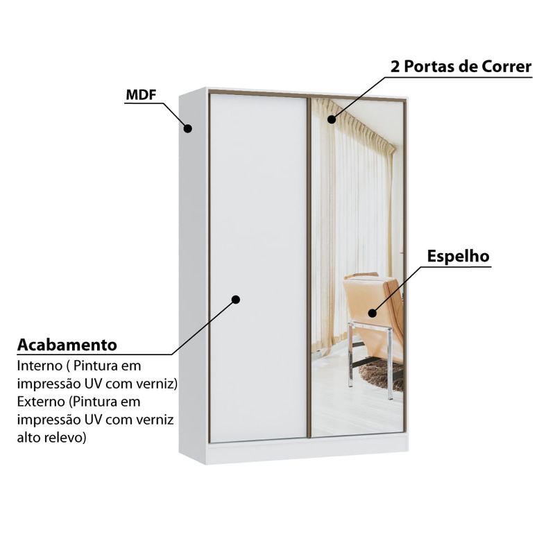 - 2 Portas de Correr, deslizantes com sistema de freio, sendo 1 com espelho